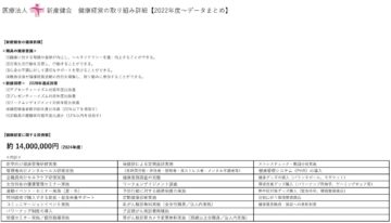 新産健会では「職員が幸せであれば、いい仕事ができる」という信念の下、職員が心身ともに健康でいられるような環境づくりに取り組んでおります。その取組みの一環として、健康宣言にもとづいて「健康経営」を推進しております。